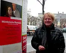![]() Peter Fricke in front of a poster of the play he was starring at, in Frankfurt | |