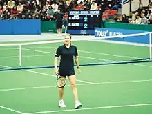 Graf retired at the age of 30 in 1999 while ranked as the world No. 3. Martina Navratilova placed Graf at the top of her list of the greatest players ever. In the year of Graf's retirement, Billie Jean King said, "Steffi [Graf] is definitely the greatest women's tennis player of all time."[15] In December 1999, Graf was named the greatest female tennis player of the 20th century by a panel of experts assembled by the Associated Press.[16] When asked in an interview to name the greatest players of all time, Serena Williams stated Graf and Roger Federer.[17] Graf married former world No. 1 men's tennis player Andre Agassi in October 2001. They have two children. Graf was inducted into the Tennis Hall of Fame in 2004. Along with Boris Becker, Graf was considered instrumental in popularizing tennis in Germany, where it remains one of the foremost national sports.[18][19][20]