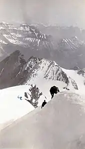- ↑ This was Pangman Peak, in the Freshfield Group of the Canadian Rockies, Alberta, Canada, first climbed by E. Cromwell, J. M. Thorington, D. Duncan, A. Megrew, P. Kaufmann. “North America, Canada, Canadian Rockies, Watershed Peak North of Pangman Peak,” Alpine Journal (1931).