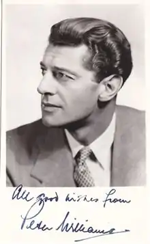 Peter Williams (1915–2003) was an American-born British film, theatre and television actor.[1][2] He is best known for his role as private detective Don Carter in the long-running British crime series Shadow Squad in the late 1950s.[3][4] He was married to Helen "Toto" Irving, and had two children.