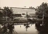 Henry B. Needham, "the dean of the basket manufacturing business in Peterborough," came to town in 1875 and for 15 years was foreman at the Childs' factory. After that factory burned in 1891, Needham established the Needham Basket Factory in a part of the White Machine Shop at Elm and Water streets. He constructed a new building in 1893. In 1916, the H. B. Needham Basket Company incorporated and purchased the shoe factory near the depot. In 1920, the Peterborough company was organized to build a new factory and combined with the Milford company. In 1926, the building was damaged by fire, and the present Peterboro Basket Company organized.