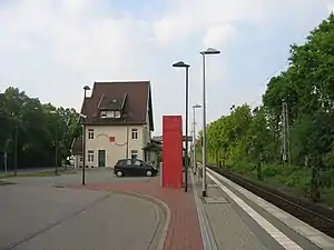 Petershagen-Lahde (German: Bahnhof Petershagen-Lahde) is a railway station located in Petershagen, Germany. The station is located on the Weser-Aller Railway. The train services are operated by Deutsche Bahn.