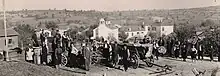 A mass exodus to Turkey by the Pomaks in the region started after the Unification of Bulgaria in 1885. They moved mostly to the regions of the cities Çorlu in East Thrace and Hasanbey in Balikesir in Anatolia.[24] Their property and estates were thereby bought, transferred to, or abandoned and acquired by the remaining population.[3] A Pomak school opened briefly in the village of Blasnichevo to encourage Pomaks to remain in their locations. In 1893 only 22 Pomaks remained in Petrevene. The entire Pomak population left the village by 1898.[25][26] Several Italian quarrymen settled in Petrevene at the beginning of the 20th century. They created, in particular, many skillful gravestones, still standing in the village cemetery.