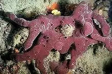 | Petrosia ficiformis is a purple brown sponge of the Mediterranean and North Atlantic | |