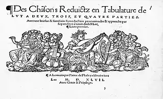 Title page of Des chansons reduictz en tabulature de lut... published by Phalesius in 1547