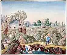 According to one source, it is mixed with kaolin in proportions varying according to the grade of porcelain to be produced; equal quantities for the best and two thirds petuntse to one third kaolin for everyday ware.[14] There were large deposits of high-quality stone in Jiangxi province in south-eastern China, which became a centre for porcelain production, especially in Jingdezhen ware.[15]