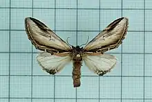 - ↑ McLeod, Robin (August 24, 2013). "Species Pheosia rimosa - Black-rimmed Prominent - Hodges#7922". BugGuide. Retrieved November 11, 2020.