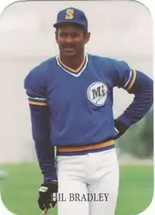 Philip Poole Bradley (born March 11, 1959) is an American former professional baseball outfielder / designated hitter who played in Major League Baseball (MLB) for the American League (AL) Seattle Mariners, Baltimore Orioles, and Chicago White Sox, and National League (NL) Philadelphia Phillies, from 1983 to 1990. He also played in Nippon Professional Baseball (NPB) for the Yomiuri Giants, in 1991.