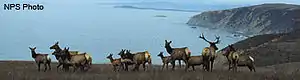 The Tule Elk Reserve comprises 2,600 acres[8] and was started in 1978 by the National Park Service (NPS). By 2000 the elk herd had increased in size to the point that it had outgrown the restricted area. NPS relocated about 50 animals to the Phillip Burton Wilderness section near Drake's Bay.