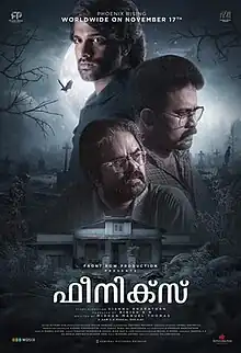 Phoenix is a 2023 Indian Malayalam-language horror romantic film directed by Vishnu Bharathan in his directorial debut and written by Midhun Manuel Thomas from a story by Vishnu. It stars Aju Varghese, Chandhunadh and Anoop Menon, alongside Bhagath Manuel, Abhirami Bose, Asha Aravind and Aji John in supporting roles.[2][3][4][5] The music was composed by Sam C. S.. Set in the 1990s, it narrates the unusual circumstances faced by advocate John Williams and his family when they start living in a mysterious house.