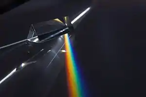 Photonics is a branch of optics that involves the application of generation, detection, and manipulation of light in form of photons through emission, transmission, modulation, signal processing, switching, amplification, and sensing.[1][2] Photonics is closely related to quantum electronics, where quantum electronics deals with the theoretical part of it while photonics deal with its engineering applications.[1] Though covering all light's technical applications over the whole spectrum, most photonic applications are in the range of visible and near-infrared light. The term photonics developed as an outgrowth of the first practical semiconductor light emitters invented in the early 1960s and optical fibers developed in the 1970s.