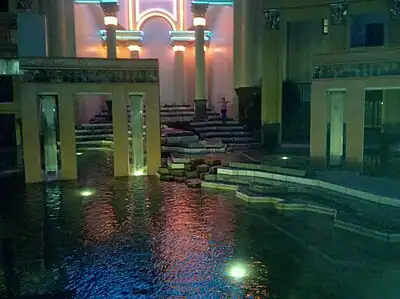 The Piazza d'Italia is an urban public plaza located behind the American Italian Cultural Center at Lafayette and Commerce Streets in downtown New Orleans, Louisiana. It is controlled by the New Orleans Building Corporation (NOBC), a public benefit corporation wholly owned by the City of New Orleans. Completed in 1978 according to a design by noted postmodern architect Charles Moore and Perez Architects of New Orleans, the Piazza d'Italia debuted to widespread acclaim on the part of artists and architects. Deemed an architectural masterpiece even prior to its completion, the Piazza in fact began to rapidly deteriorate as the development surrounding it was never realized. By the turn of the new millennium, the Piazza d'Italia was largely unfrequented by and unknown to New Orleanians, and was sometimes referred to as the first "postmodern ruin". The conversion of the adjacent Lykes Center to the Loews Hotel, New Orleans, completed in 2003, was accompanied by the full restoration of the Piazza d'Italia (accomplished by 2004).