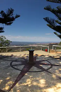 In 1930 the Toowoomba office of Kodak (Australasia) Pty Ltd approached the Toowoomba City Council requesting permission to erect a Cairn at Picnic Point on which would be mounted a brass plate indicating the names and direction of numerous geographical landmarks visible from the point. Permission was granted with appreciation. The list of landmark directions suggested by the council was as follows: "Crow's Nest, Ravensbourne (NationalPark), Mt Taylor, Helidon, Gatton, Laidley, Brisbane, Cunningham's Gap, Warwick, Mt Barney, Mt Lindsey". Placement was suggested on "the Magnetic Meridan to simplify the placing in position". At the time of installation of this cairn efforts were made to identify the site of the 1891 Trigonometrical Survey Station and perhaps erect the direction cairn on this site. It appears that these search efforts were not successful.[1]