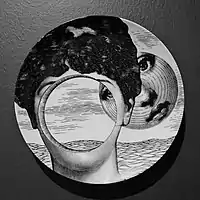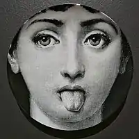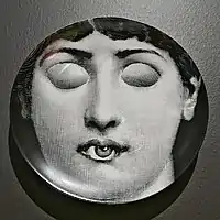 In the 1940s in Milan Fornasetti founded the design and decorative arts atelier that bears his name, Fornasetti, which, under the artistic direction of his son Barnaba Fornasetti, has become known throughout the world.[7] One decisive factor in starting this activity was meeting Gio Ponti,[8] who pushed him to develop his intuition: to produce everyday objects enriched by the kind of decoration that would bring art into ordinary people's homes. This was the origin of the Fornasetti atelier, an example of the principle of "practical madness",[9] where creativity is in perfect harmony with the utility of the object. Then as now, porcelain items, furniture and furnishing accessories represented the heart of Fornasetti's production.