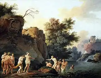 He was the son of a goldsmith. His mother died five days after his baptism. When he came of age, he was apprenticed to an engineer in Sercus, but soon realized that he was not learning the skills that matched his aspirations. Aged barely sixteen, he managed to find a position in the studios of François Boucher.[1] Within five years, he was ready to compete with other artists at the Académie royale de peinture et de sculpture and was awarded the Prix de Rome for painting in 1747.