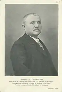 With Emile Valude (1857–1930), Lagrange was co-publisher of the Encyclopédie française d'ophtalmologie (1903–10).[1]