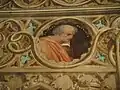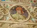 His skill as a fresco artist, put him in demand across the peninsula. Among his works are frescoes for the Basilica in the Abbey of Monte Cassino, the church of Santa Maria Formosa in Venice, and for many of the Torlonia properties in Rome including Palazzo Torloni in Piazza Venezia and Villa Torlonia in Rome (the latter had stories from Aesop's fables as well a portraits of artists seen below).[2] He also frescoed the apse and the cupola of the Cathedral of Rieti with stories from the bible.[3] He also painted for or his works are found in Villa de Manzoni near Agordo, Palazzo Ricci in Rieti, Palazzo Lucernari and del Governatore in Rome, Church of San Isidoro, Rome, Casa dell’Intendente in L'Aquila, San Francesco, Naples, Chapel of Pius V and in the Loggia of the Vatican, the famous Caffè Pedrocchi[4] and Palazzo Cittadella-Vigodarzere in Padua, Villa Patt in Sedico, Palazzo Bortolan and Palazzo Spineda in Treviso, Palazzo Vecchia in Vicenza.[5][6]