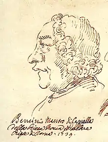 He left there to succeed Giuseppe Ottavio Pitoni (1657-1743) as maestro di cappella of the Cappella Giulia at Saint Peter's Basilica in Rome.[2] Within the years of 1749 until 1753 he was supported by Niccolo Jomelli, because Bencini became more and more unable to work because of illness. During this time Jomelli, who was better known as a composer of operas, created the most of his sacral compositions. In 1753 Jomelli left Rome in order to succeed Ignaz Holzbauer in Stuttgart.[3] On his death Bencini was succeeded by Giovanni Battista Costanzi (1704-1778).[4]
