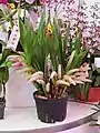 Pinalia floribunda is a species of orchid found in Myanmar, Thailand, Vietnam, Malaysia, Indonesia and the Philippines in montane forests at elevations of 500 to 2400 meters above sea level. It is a small to medium-sized, warm-to-cold growing epiphyte found on large trees along streams. It has erect, stem-like, narrow ellipsoid pseudo-bulbs carrying soft leaves that flower in the spring.[3]