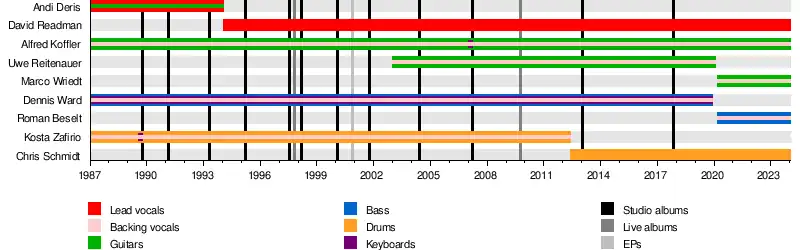 | Past members | Dennis Ward Kosta Zafiriou Andi Deris Uwe Reitenauer |