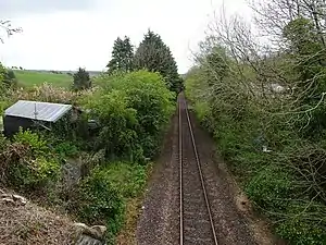 ![]() The site of the station, looking south towards Pinwherry, in 2019 | |