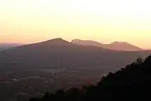 View of Pinnacle (foreground), Sauratown Mountain, and Hanging Rock State Park (background)