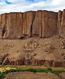 The canyon is made of ignimbrite,[1] among other volcanic rocks formed during the Jurassic period.[2] It was created through the erosion caused by the Pinturas River, which cut into the Chon Aike Formation to form the canyon.[2]