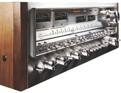 The adoption of a single-stage differential amplifier with low-noise dual transistors, a current mirror load and a 3-stage Darlington triple SEPP circuit provides a bumper power output of 270 watts + 270 watts (20 hertz to 20,000 hertz with no more than 0.03% THD) which is extremely stable. ... The power amplifier is configured as a DC power amplifier with the capacitors removed from the NFB circuit for a flat gain response. ... The large-sized toroidal transformers with their superb regulation employ 22,000 μF large-capacity electrolytic capacitors (two per each channel). There are independent dual power supply circuits with separate power transformer windings to provide power for the left and right channels. ... The FM front end incorporates a two-stage RF circuit that employs a 5-gang tuning capacitor and three dual gate MOS FETs for high gain and low noise. This configuration excels in ridding the sound of undesirable interference ... The FM IF amplifier combines five dual-element ceramic filters ... for high selectivity (80 dB) and low distortion ... The local oscillator includes Pioneer's very own quartz sampling locked APC (Automatic Phase Control). The output of this extremely precise quartz oscillator is divided into frequencies of 100 kHz and so reception frequencies which are a multiple of 100 kHz are locked at every 100 kHz.