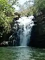 The municipality contains part of the 2,833 hectares (7,000 acres) Pirineus State Park, created in 1987.[4] Waterfalls are the primary tourist attraction for Pirenopolis and Corumbá. Around the town, in a distance of 15 km., there are more than twenty spectacular waterfalls with pristine water. Some of them are enormous such as the Salto de Corumba (which disappeared for decades when prospectors diverted the waters for dredging). Other waterfalls are formed by a series of cascades. Many are on private property and are operated as a business. Other falls can be found on hiking trails. One of the longest rivers in the state of Goiás, the Corumbá River has its source near Pirenópolis.