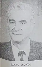 Pirro Kondi (born 1924, date of death unknown, 2015 or before) was an Albanian politician of the Albanian Party of Labour (PPSh).[1] Coming from a family with strong communist background, he became member of the Albanian Parliament and a candidate-member of the Politburo of the Party of Labour of Albania by the '80.
