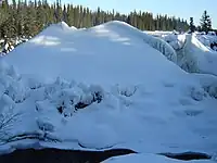 It is common to see one or more of the local otters using the large ice buildup as a "slide", providing the otters and lucky spectators with hours of amusement.