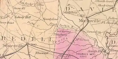 Location of Pittsburg in Rowan County, North Carolina, in 1882