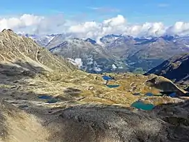 ![]() Piz d'Arpiglias (far-left) and the plateau of Macun | |