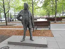 A sculpture representing Jean-Paul Riopelle (Le Grand Jean-Paul) stands in between the trees on the southern part of the square. It was realized by Roseline Granet in 2003.