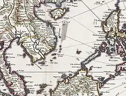 ![]() "I. de Pracel" south of Hainan in a 16th-century Nicolaes Visscher II map |