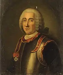 Senior nobles such as the dukes of Atholl and Hamilton refused to commit, partly because of an attempt in 1703 by Simon Fraser, later Lord Lovat, to implicate them in a Jacobite plot as part of a personal feud.[6] However, Hooke obtained a letter of support signed by Erroll, the Earl of Panmure and six others, promising 25,000 men and requesting 8,000 French troops, weapons, money, artillery, ammunition and "majors, lieutenants, and serjeants to discipline" the Scots army.[7] [lower-alpha 2]