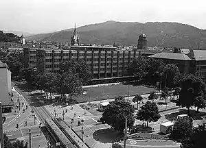 The Platz der Alten Synagoge (Old Synagogue Square) is a square in Freiburg, Germany. With a size of 130 square metres, it is the second largest square in the city after Minster Square.[1] The square is named after the old synagogue, which was destroyed during the Kristallnacht in 1938. The synagogue had been built in 1869/1870 to the southwest of today's location of the square.