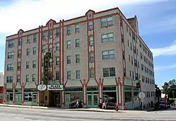 Plaza Hotel is a historic hotel building located at Trenton, Grundy County, Missouri. It was built in 1929–1930, and is a five-story, Art Deco style reinforced concrete building. The building measures approximately 10,912 square feet (1,013.8 m2) It has a pre-cast, concrete block exterior, concrete roof and floors.[2]:5