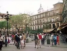 The Plaza de Zocodover is a square of the city of Toledo, in the autonomous community of Castile-La Mancha, Spain. It was the nerve center of the city during most of its history, acting as its main square. A part of it was designed by Juan de Herrera during the reign of Philip II.[1]