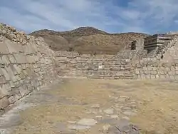 To the west of the ballgame court (and ceremonial structures) is a Temazcal or ceremonial bath house,[12] were players probably took purifying baths, before the ceremonial game.[1]