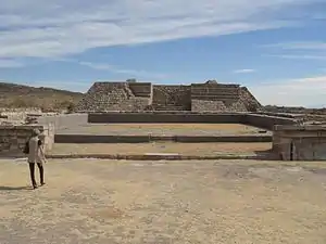 Plazuelas is a prehispanic archaeological site located just north of San Juan el Alto, some 2.7 kilometers (1.57 mi.) north of federal highway 90 (Pénjamo-Guadalajara), and about 11 kilometers (6.8 mi.) west of the city of Pénjamo in the state of Guanajuato, Mexico.[1] The site is open to the public; it is dominated by a large, rectangular plaza with several pyramidal structures and platforms, along with a massive ball court. To the north of the structures is a field of boulders with thousands of glyphs carved into them.