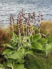 The plant is endemic to New Zealand’s subantarctic Antipodes, Auckland and Campbell Islands, where it is a striking component of the megaherb community. It occurs from the coast up into the island ranges on peaty ground in herbfields.[3]
