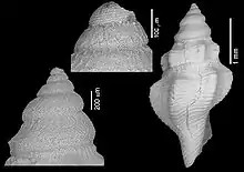 | Shell and protoconch of † Pleurotomella rappardiformis (holotype in MNHN, Paris) | |