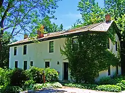 But the Paunacks sold the inn after a couple years to a Thomas Griffiths, and he quickly sold it to John Whare,[3] a glass-blower from England.[4] In 1858 Whare probably added a brick section that expanded the capacity of the inn. This downhill end of the building exposes some basement windows and a doorway that led into the inn's taproom. A parlor at the front of the house was the inn's common room, with the kitchen behind it. In the 1860 census John is listed as a tavernkeeper, with wife Isabella and four children.[3] This is when the inn began to be called Plough Inn, since Whare also sold plows to farmers.[4] Whare's inn hosted travelling salesmen, farmers, legislatures, and Union soldiers during the Civil War. Whare operated the inn until 1865.[3]