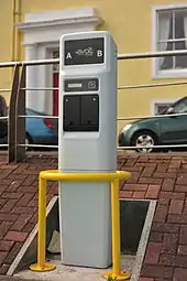 Through the Office for Low Emission Vehicles (OLEV), the UK government provides grants towards the installation of up to two charge points at a residential address, or up to 20 at a workplace. The installer can claim 75% of the cost (including purchase, installation costs and VAT). The maximum grant for a residential point was initially capped at £1,000[44] then reduced to £500, and in March 2020 reduced again to £350.[45]