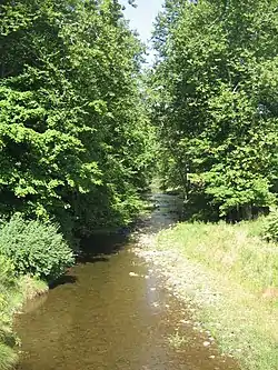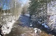 ![]() Plunketts Creek looking upstream, just north of the mouth in Plunketts Creek Township | |