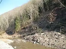 The September 2011 flood was caused by remnants of Tropical Storm Lee, which dumped 11.36 inches (289 mm) of rainfall in the nearby village of Shunk in Fox Township in Sullivan County (just north of the creek's source).[15] The 2011 flooding caused widespread damage in Proctor and Barbours and destroyed a small stone bridge on Wallis Run Road in Proctor over King Run, a tributary of Plunketts Creek.[16] The Barbours Fire Hall became an "emergency relief center offering food, shelter and supplies to victims of the flood".[17] Further downstream on the Loyalsock, the flooding badly damaged the historic Hillsgrove Covered Bridge, washed out sections of Pennsylvania Route 87 along the creek, and destroyed the Pennsylvania Route 973 and Lycoming Valley Railroad bridges over the creek near and in Montoursville.[18][19]