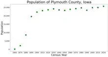 Plymouth County is a county located in the U.S. state of Iowa. As of the 2020 census, the population was 25,698.[1] The county seat is Le Mars.[2] Plymouth County was named after Plymouth, Massachusetts.[3]