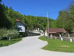 The modern settlement developed in connection with a postal station and toll station at the site. The first known leaseholder of the toll station was Andreas Sallitinger, recorded in 1538, and the postal station was established in 1573, when postal service was established between Graz and Ljubljana. The postal station and toll station were combined in 1585.[3][7] During the 17th century, this was the only postal station in Upper Carniola, and within Carniola it was second in importance only to the postal station in Ljubljana.[7] The toll services were relocated to Vir and Krašnja in 1809, and the postal service was relocated to Lukovica pri Domžalah in 1867.[3][7]