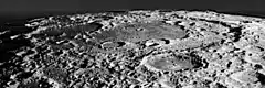 Poincaré is a large lunar impact basin that lies in the southern hemisphere on the far side of the Moon. Most of the formation has been heavily eroded by subsequent impacts, leaving a battered formation with only rugged remnants of the original outer rim to the west.